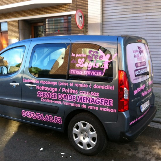 Lettrage Peugeot Partner Les petite fée du logis à Charleroi